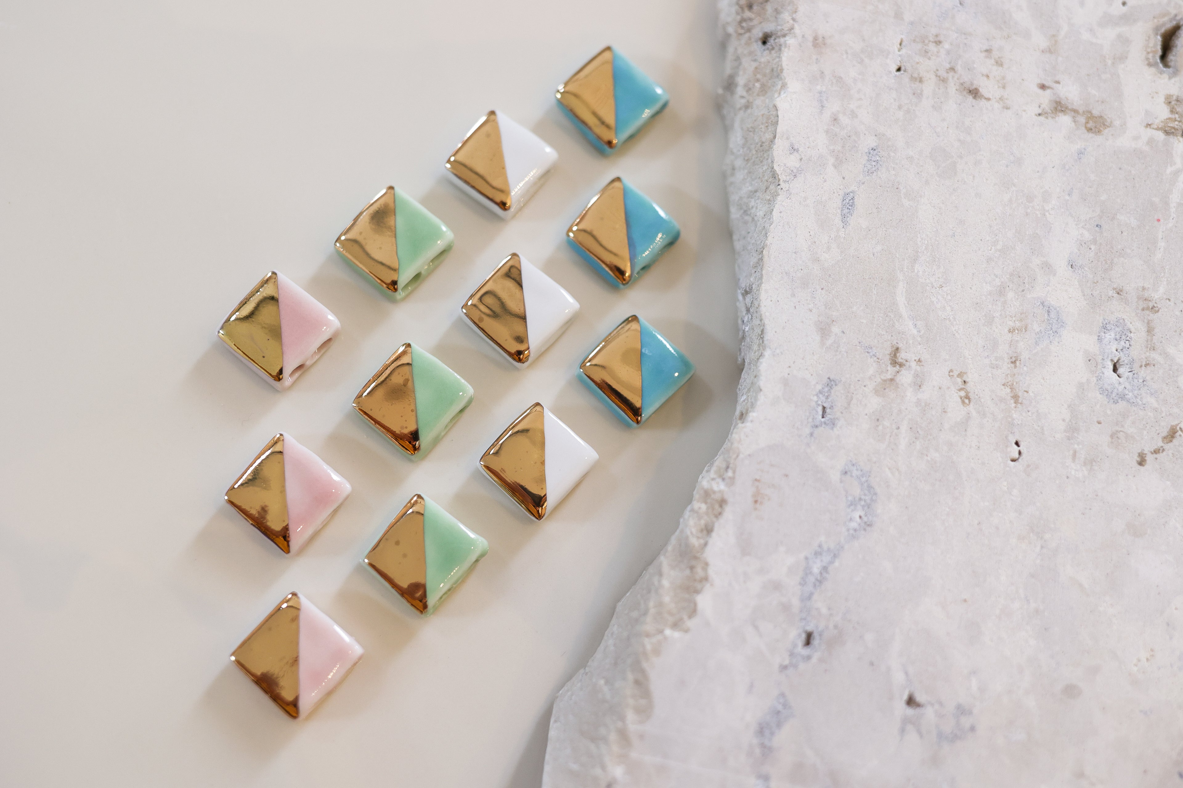 Porcelana de Barcelona, ouro e esmalte dos EUA, e todo o restante de nossa matéria-prima vem de pequenas empreendedoras brasileiras. Assim, fortalecemos os negócios locais, liderados por mulheres.